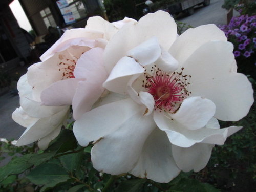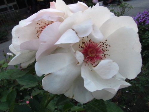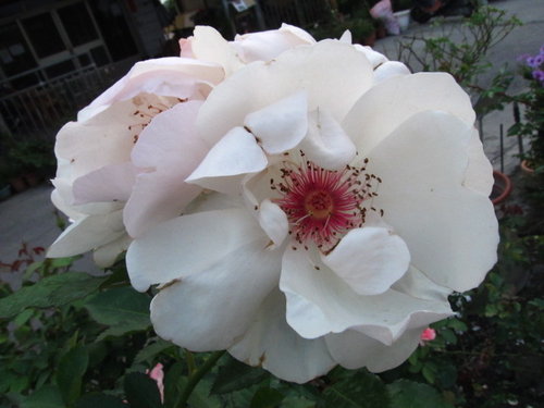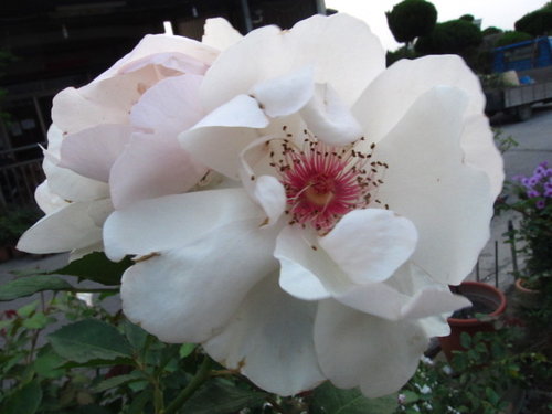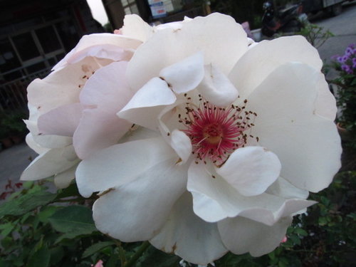 | 灌木型玫瑰植株強健,開花純白色帶有特殊美麗的紅花心 |