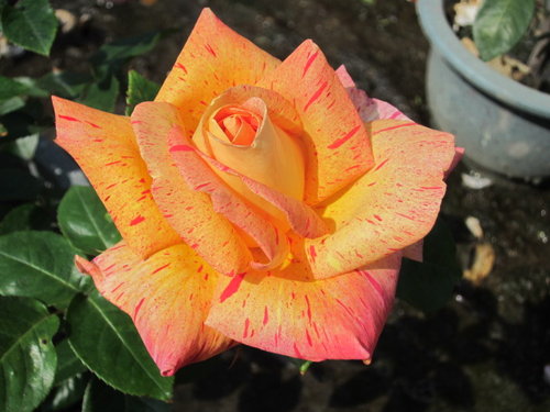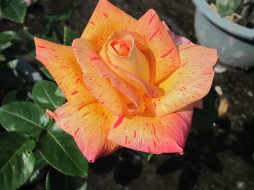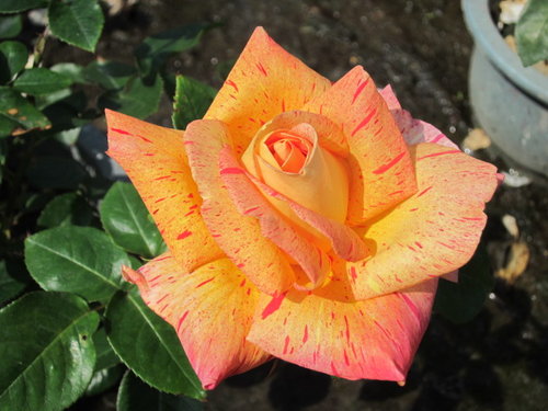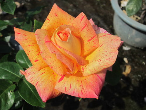 花徑13~16公分巨大輪玫瑰花,黃色粉紅滾邊鑲著絞紋
