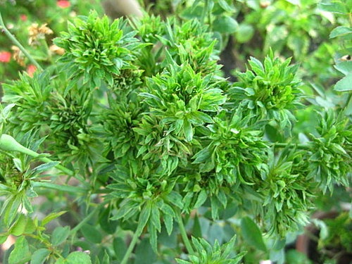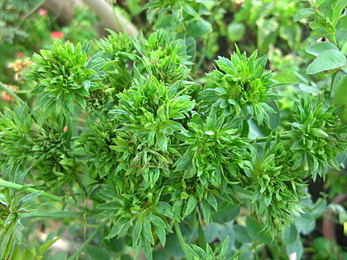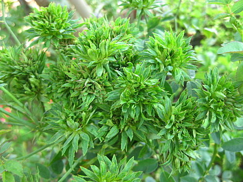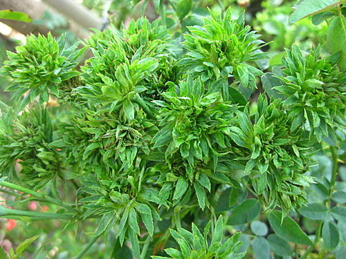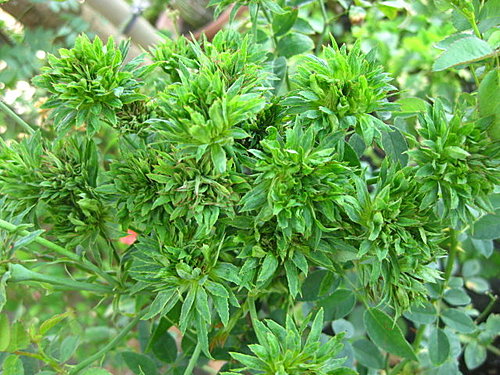 綠玫瑰,粉月季芽變種 花朵苞葉化又名"青花" | |