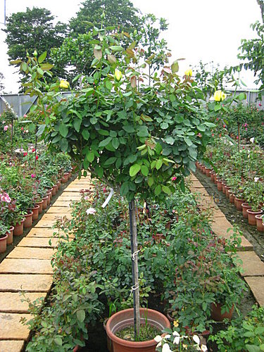 再用繩子綁緊,可以有效的支撐樹玫瑰