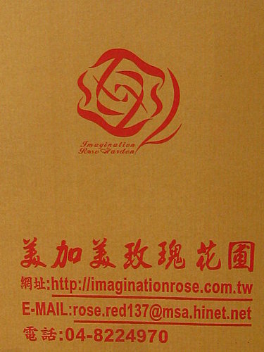 上面印有美加美玫瑰花圃,專利商標Imagination Rose Garden