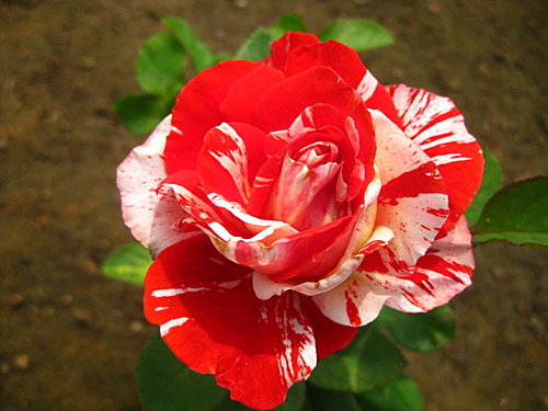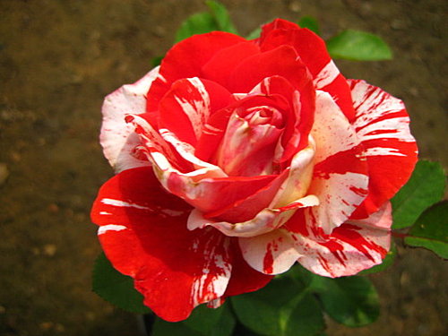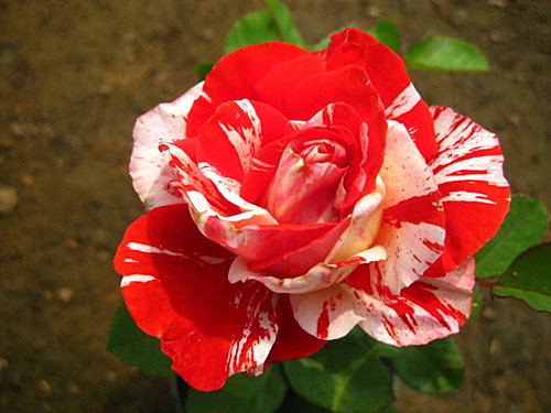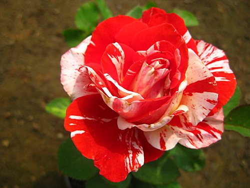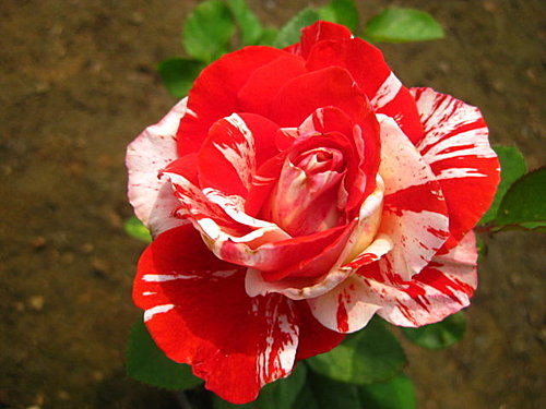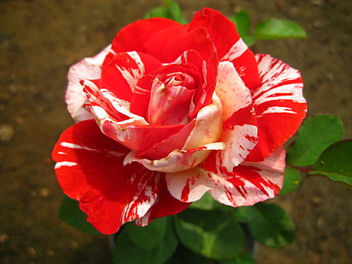 圓瓣杯型的絞紋玫瑰,四季開花在低溫期白色紋路會變比較多 | |