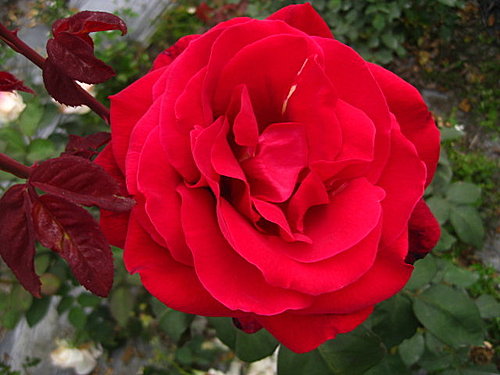 半劍瓣高心型,生長強健四季開花,黑紅色巨大輪品種 |