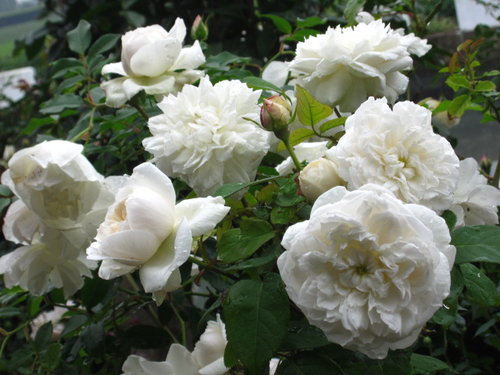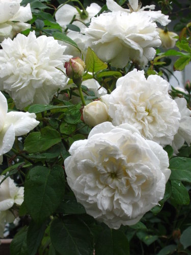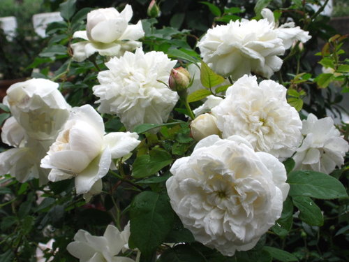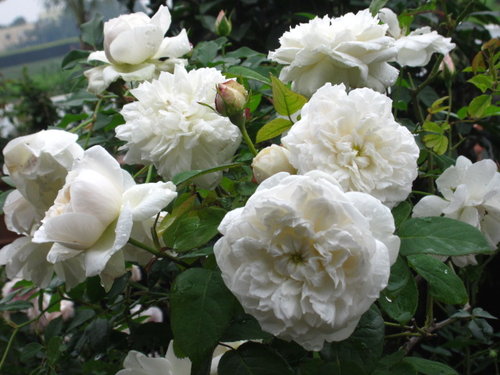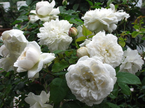植株生長緩慢矮小四季開花,是英國玫瑰中少數的白色品種。