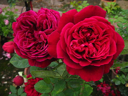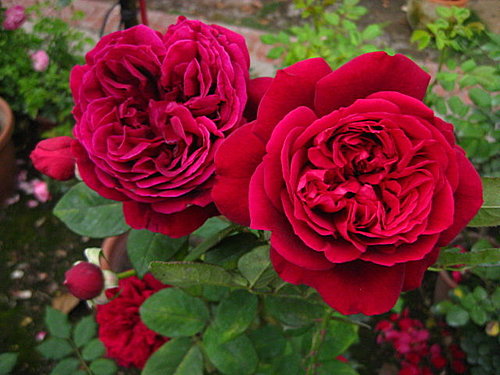 花徑10~12公分,重瓣杯型黑紅色具有濃郁香氣